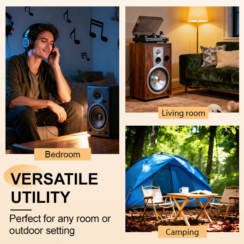 - Campingentusiaster: Bärbar lampa och högtalare för utomhusäventyr.