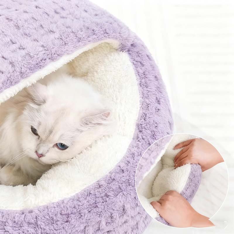 Paketet inkluderar: 1 * Mysig kattgrottsäng med huva
