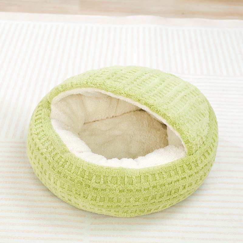 HALVSLUTEN DESIGN: Denna säng har en halvsluten design som ger husdjur en privat och säker tillflyktsort. Den erbjuder en känsla av trygghet och komfort och efterliknar en naturlig lya för avkoppling. Strukturen möjliggör tillräcklig ventilation samtidigt som den bibehåller en mysig och skyddad miljö, vilket bidrar till husdjurets allmänna välbefinnande.