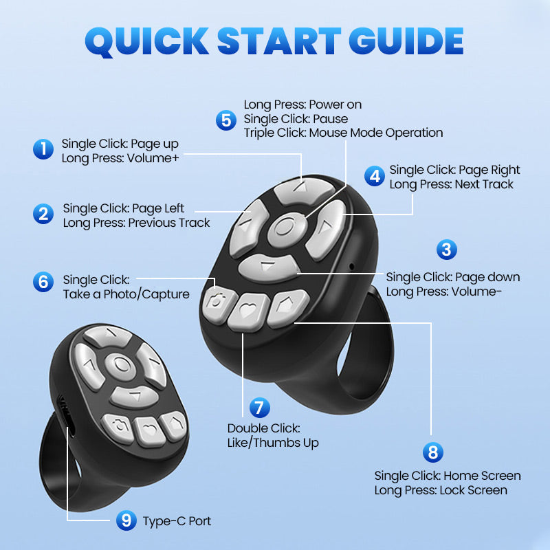 Trådlös Bluetooth-fjärrkontroll med fingertopparna