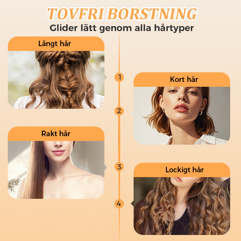 Noggrant placerade borsthår – glider lätt genom alla hårtyper (tunna till tjocka lockar).