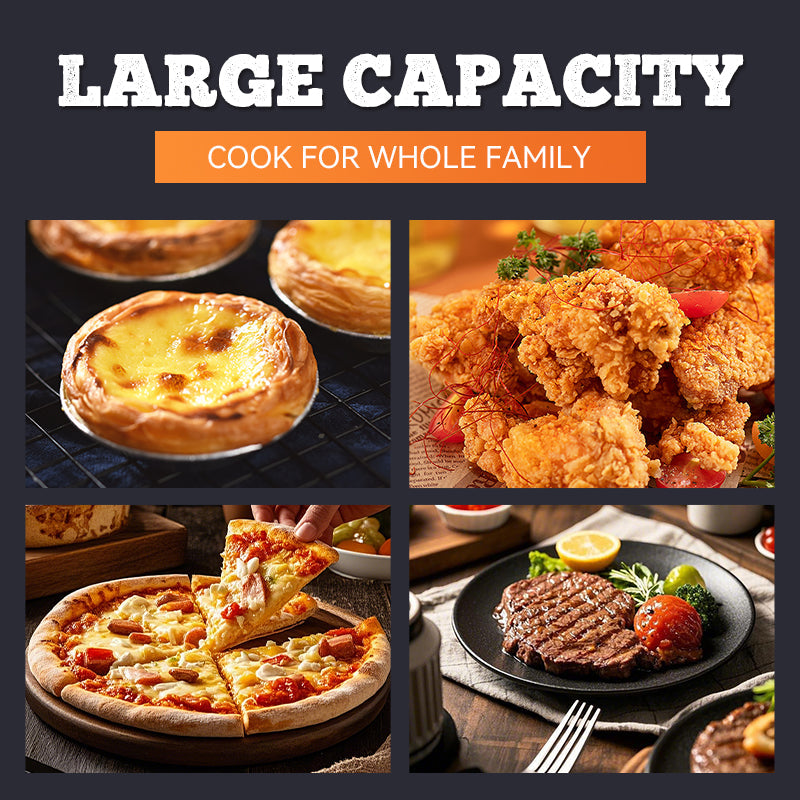 - Stort transparent fönster – se hela processen när kyckling, pommes eller pizza tillagas. Bestäm själv om du vill ha “lätt krispig” eller “djupt gyllen”.