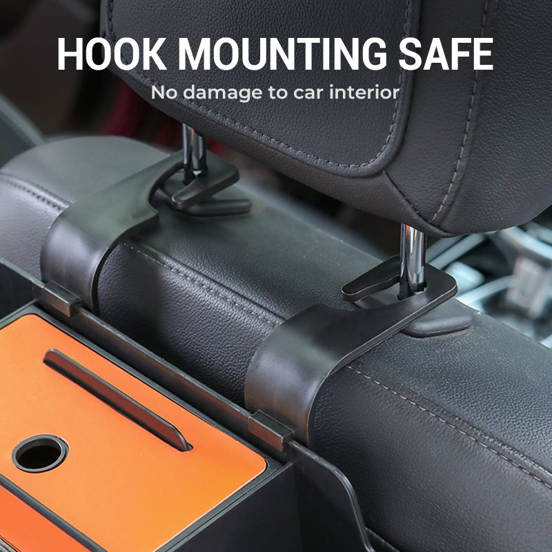 Multifunktionell förvaringsbox till bilens baksäte med krokar