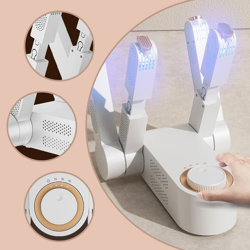 360° luftflöde • 0–6 timmars timer • Hopfällbar design • Mångsidig för alla skor • Enkel kontrollpanel