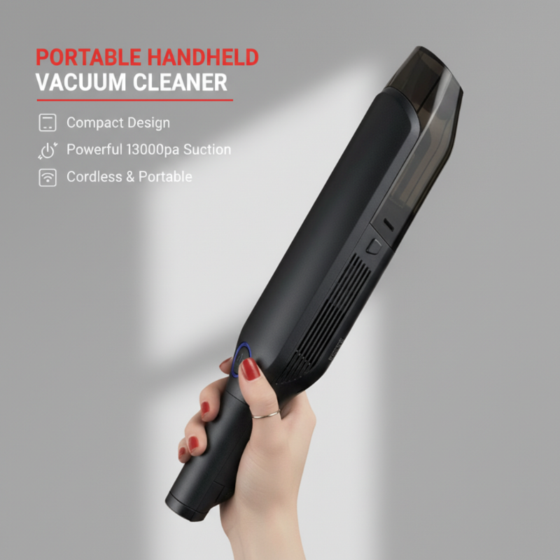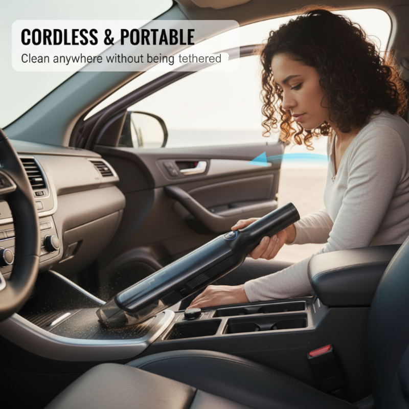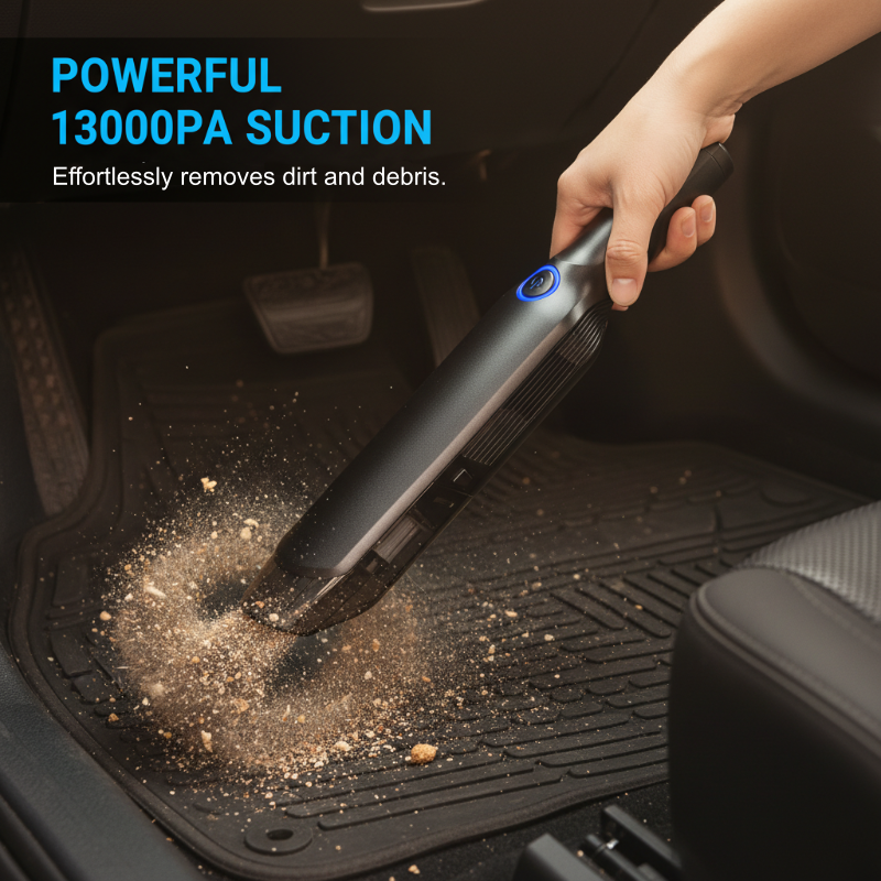 Denna trådlösa hånddagsdammsugare har en kraftig 13000PA suction som lätt lyfter fastklistrade smuts, smulor, djurhår och andra skräp från bilens mattor och bekledning.
