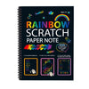 FÀrgglad klotterkonst-anteckningsbok: Sidorna har klara fÀrger dolda under en matt yta; barn kan avslöja dem helt enkelt genom att skrapa med den medföljande trÀpennan.