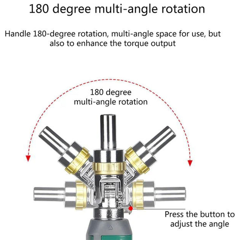 3-way lock for efficient use; the internal lock head rotates 180 degrees, providing flexibility in narrow spaces. The rotating handle adapts to different angles and areas to enhance torque and efficiency – no more awkward positions!