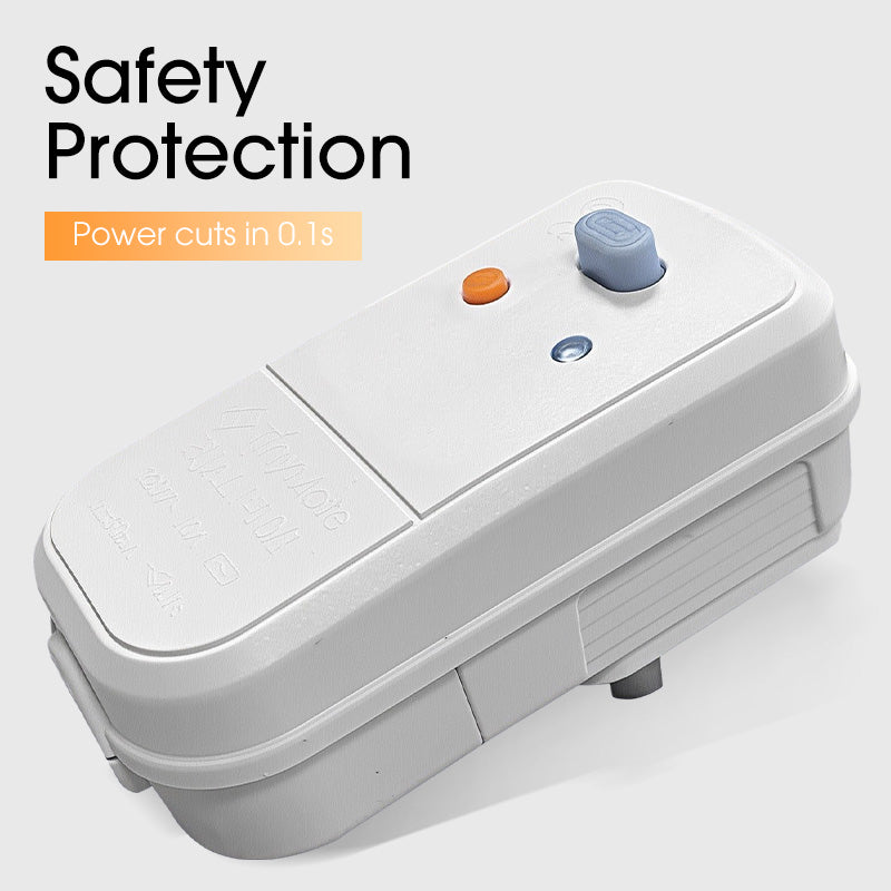 SÄKERHET FÖRST: Med en läckageskyddskontakt stänger enheten av strömmen inom 0,1 sekunder för att förhindra oavsiktliga stötar. Denna snabbverkande säkerhetsmekanism garanterar ett tillförlitligt skydd för hushållen och håller badtiderna säkra och bekymmersfria.
